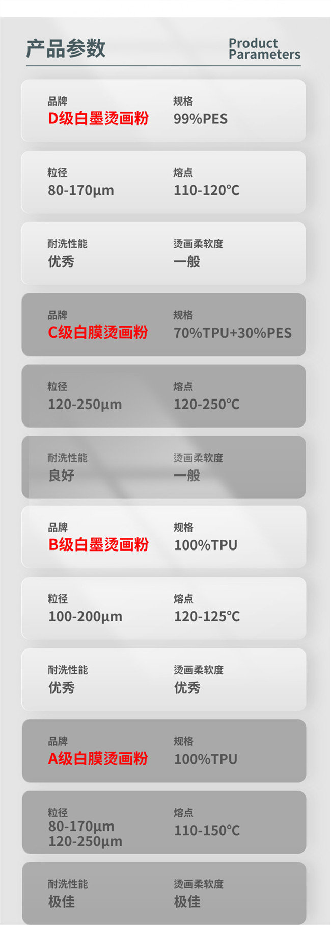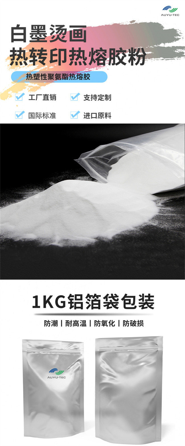 白墨烫画粉即是热熔胶粉末,以TPU聚氨酯热熔胶粉为主。