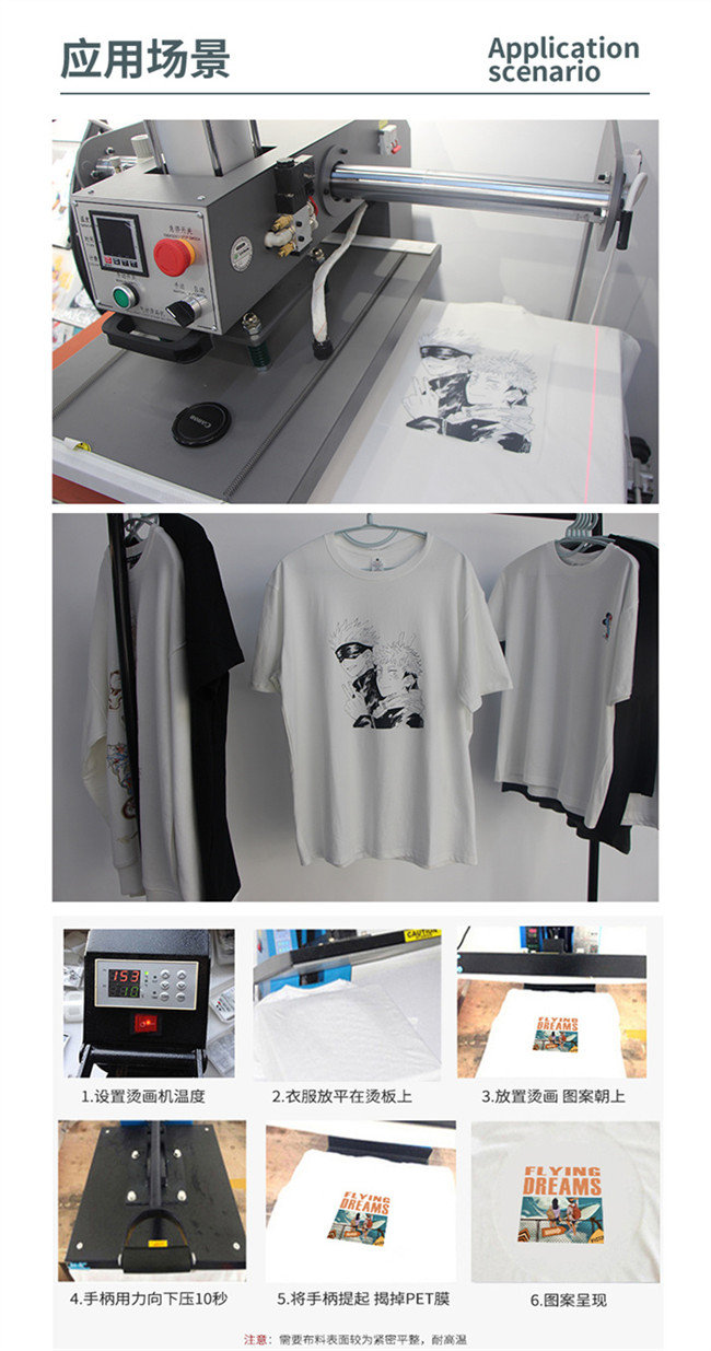 白墨烫画优势在于能够转印出高精密图片及其他五颜六色图案设计等,实际效果和电脑手绘稿相当靠近。